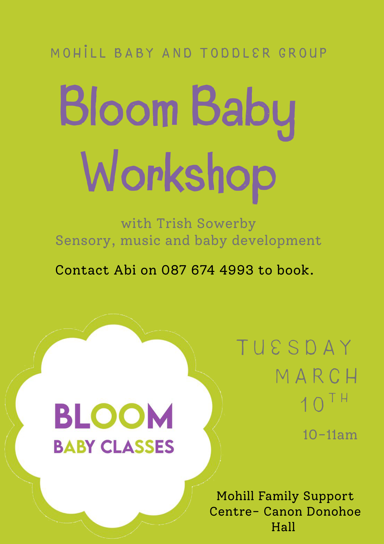 Mohill Family Resource Centre will host a sensory, music and baby development workshop ran by Trish from Bloom.