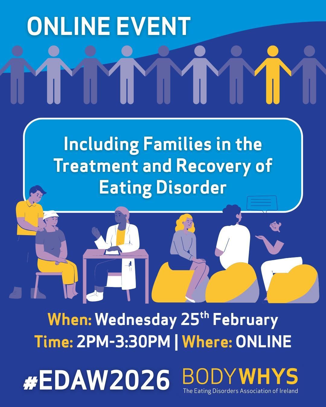 Bodywhys will be hosting a series of events featuring people with lived experience of eating disorders, those supporting someone, researchers and clinicians, all working together to raise awareness of eating disorders amongst the wider community.