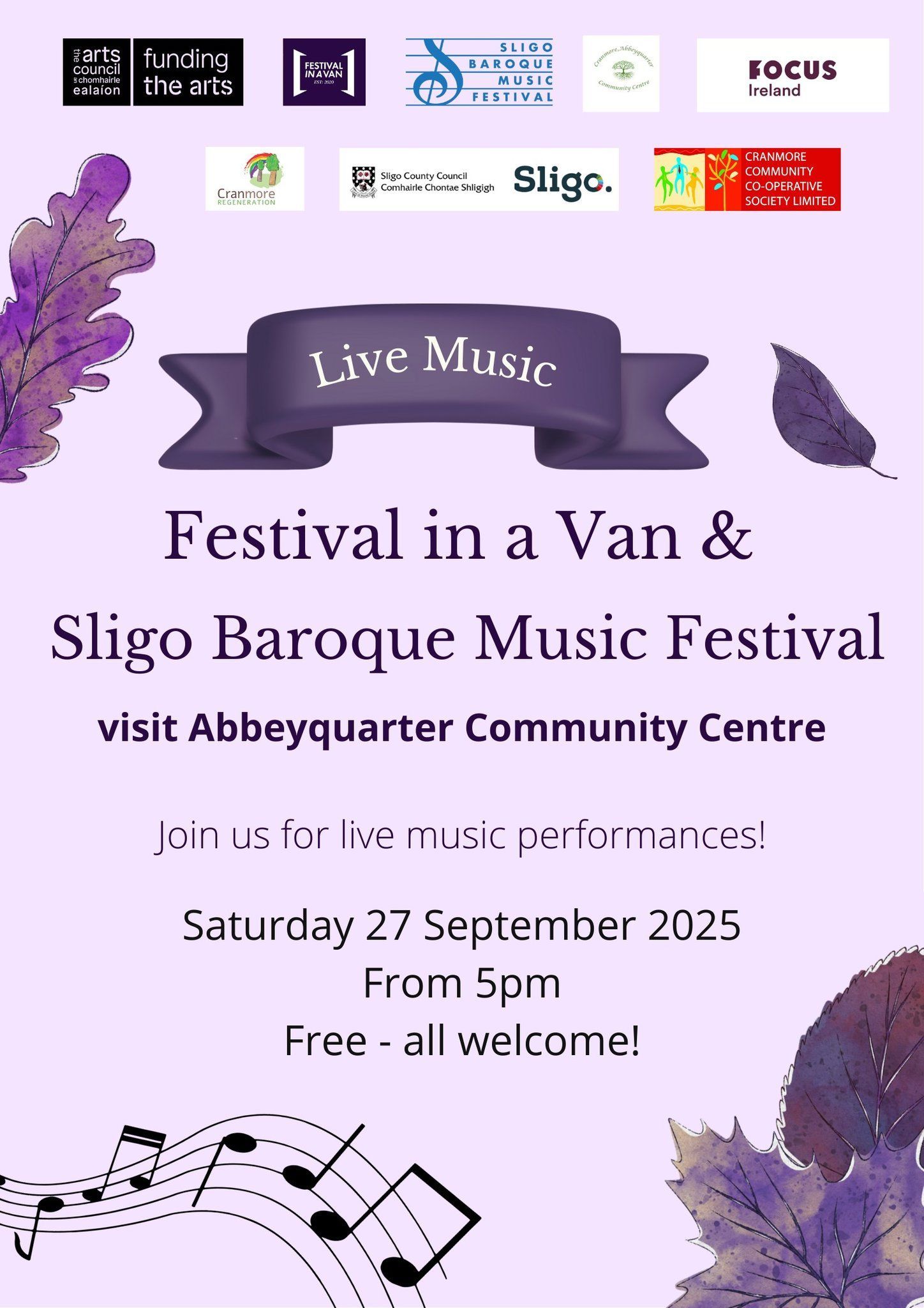 Come join us at Cranmore Abbeyquarter Community Centre this Saturday 27th September at 5pm for some free live music with Festival in a Van and Sligo Baroque Musical Festival.