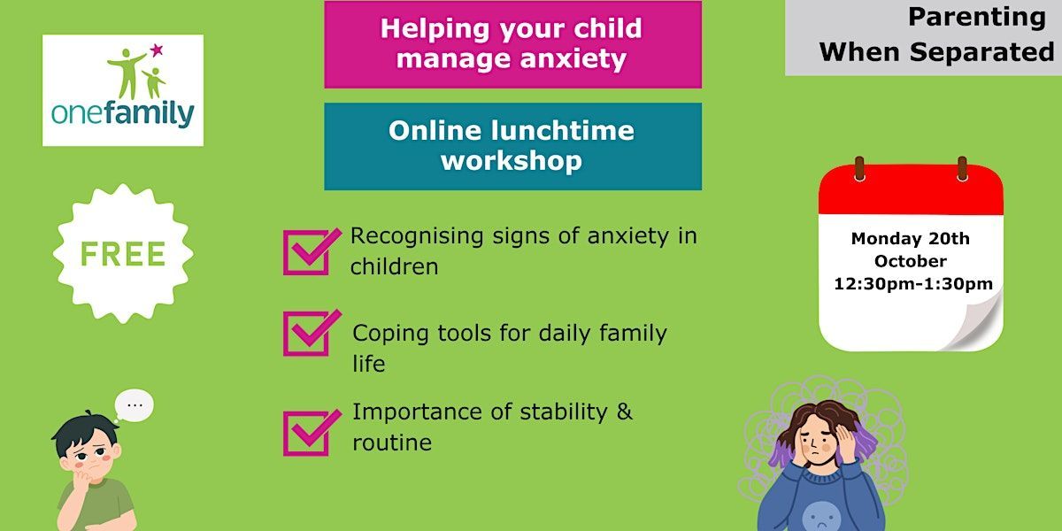 All children experience anxiety, but this can be heightened when children are experiencing periods of transition, such as when parents have separated. This is a common experience and with the right tools and supports, you and your child can be supported through periods of heightened anxiety. In our 1 hour, lunchtime workshop, you’ll gain practical advice and best-practice guidance on: