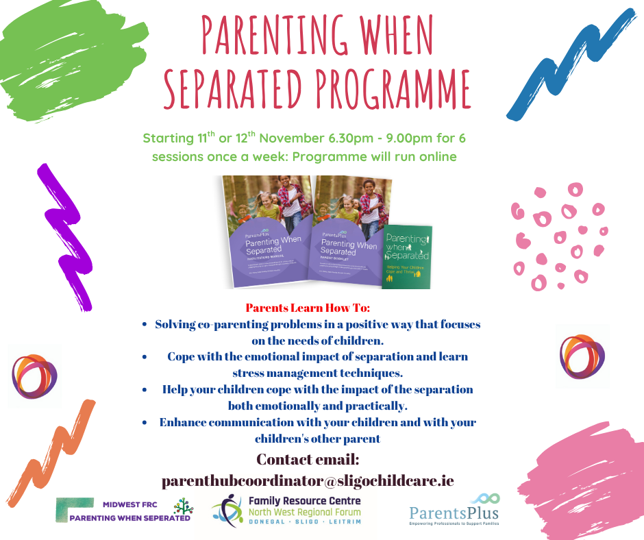 Please get in touch to secure a place on Parenting When Separated programme which starts on the 11th and 12th of November.