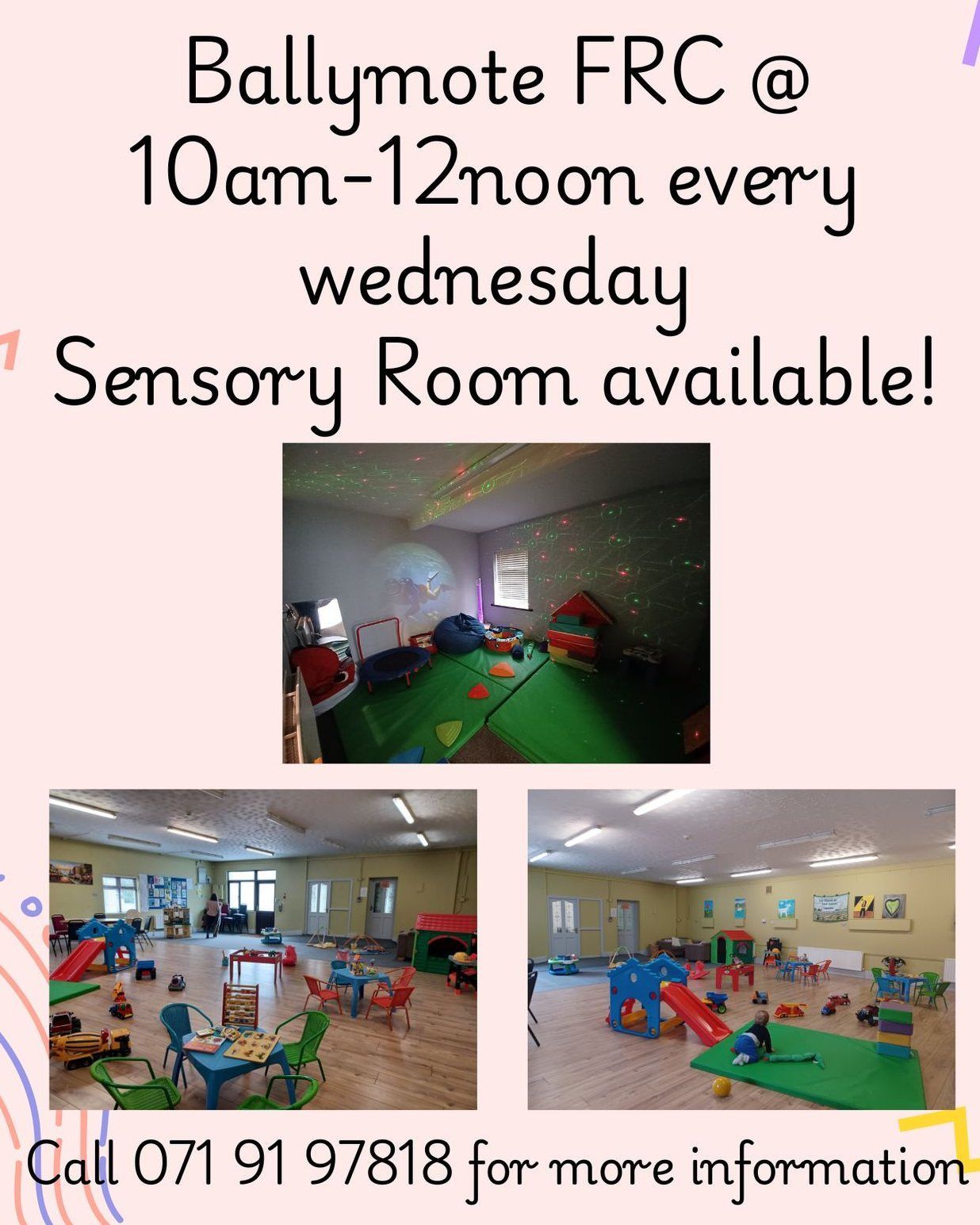 Peek a boo baby and toddler group takes place every Wednesday from 10am to 12pm in Ballymote Family Resource center where a sensory room is available for your little one to explore.