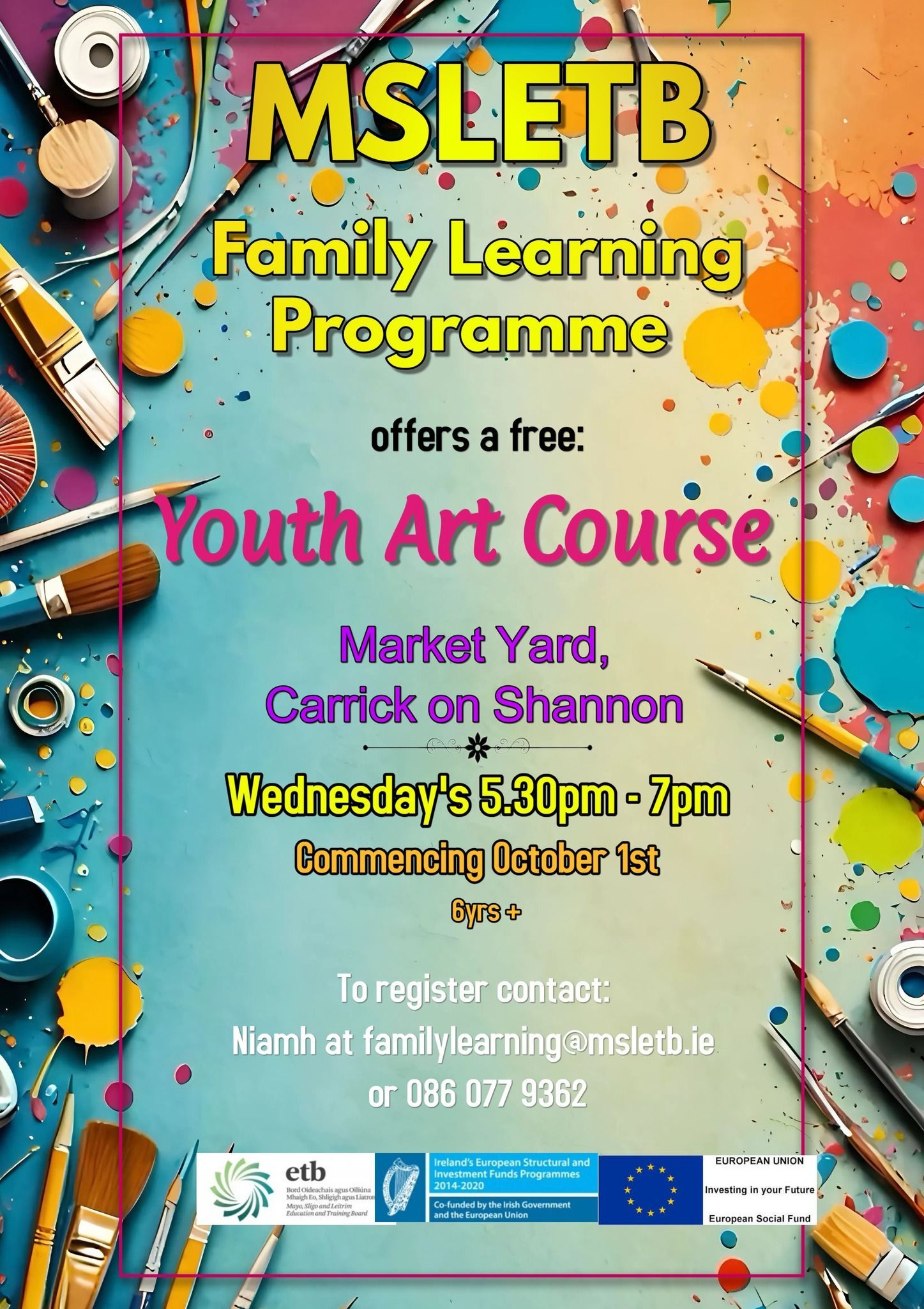 Our Youth Art Class will start on Wednesday 1st of October, FET Centre, Market Yard, Ck on Shannon